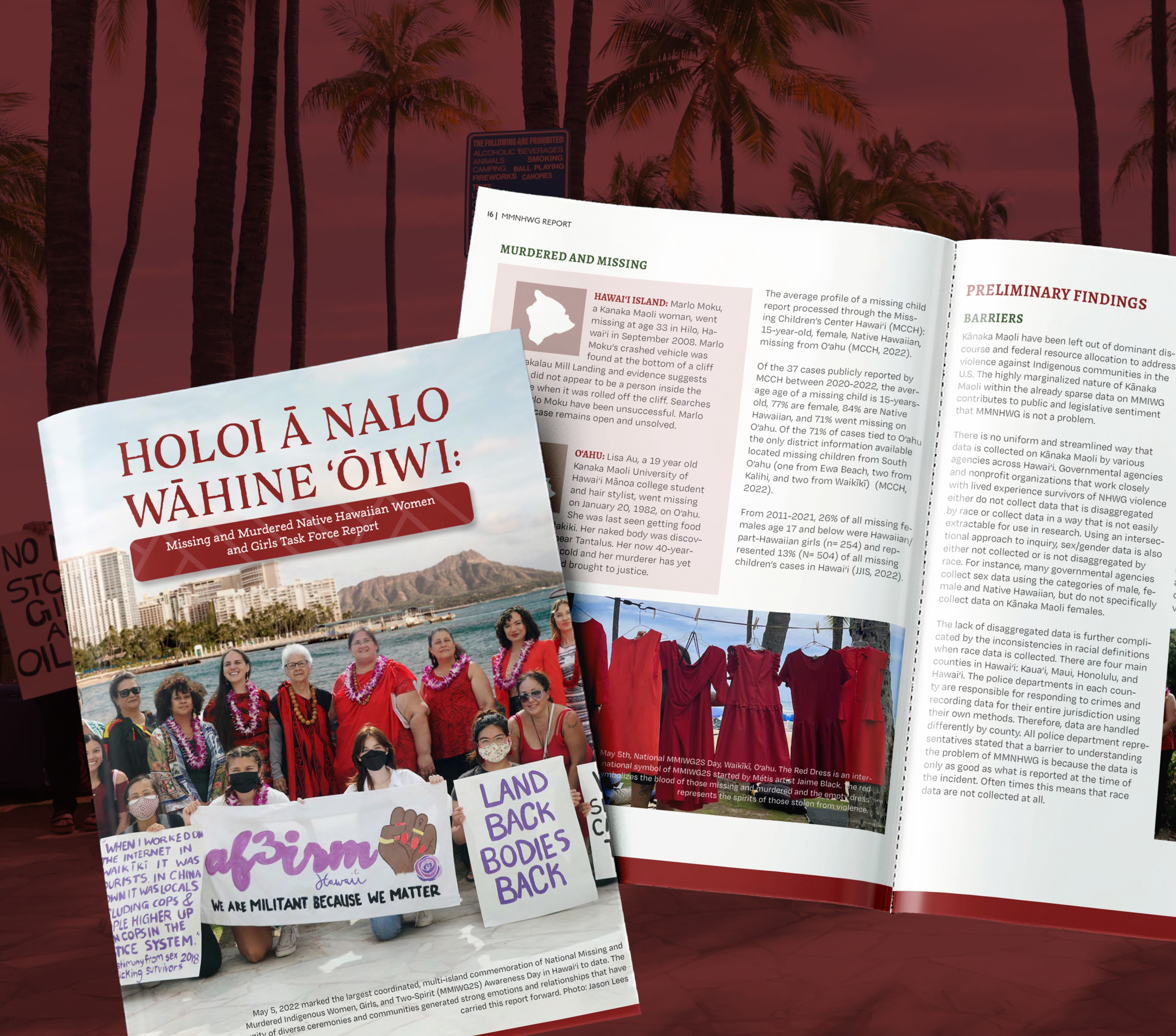 On December 15, 2022, the report was presented by State Legislators and key MMNHWG Task Force members at a public press conference. Attendees included government officials from the Hawaiʻi State House and Senate, representatives from the Hawaiʻi State Commission on the Status of Women, and the Office of Hawaiian Affairs.