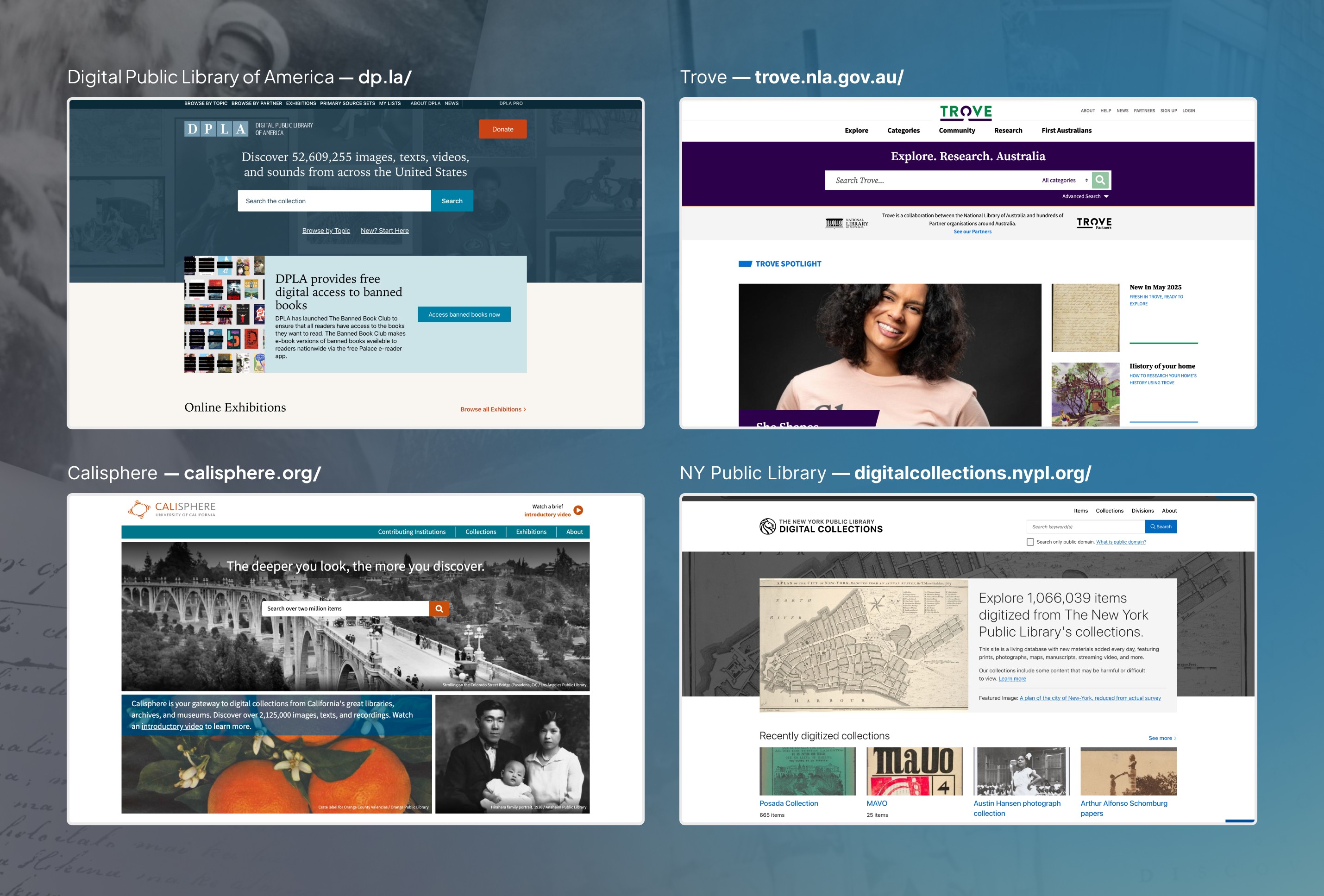 I analyzed four digital archive systems to understand how they structure complex information.