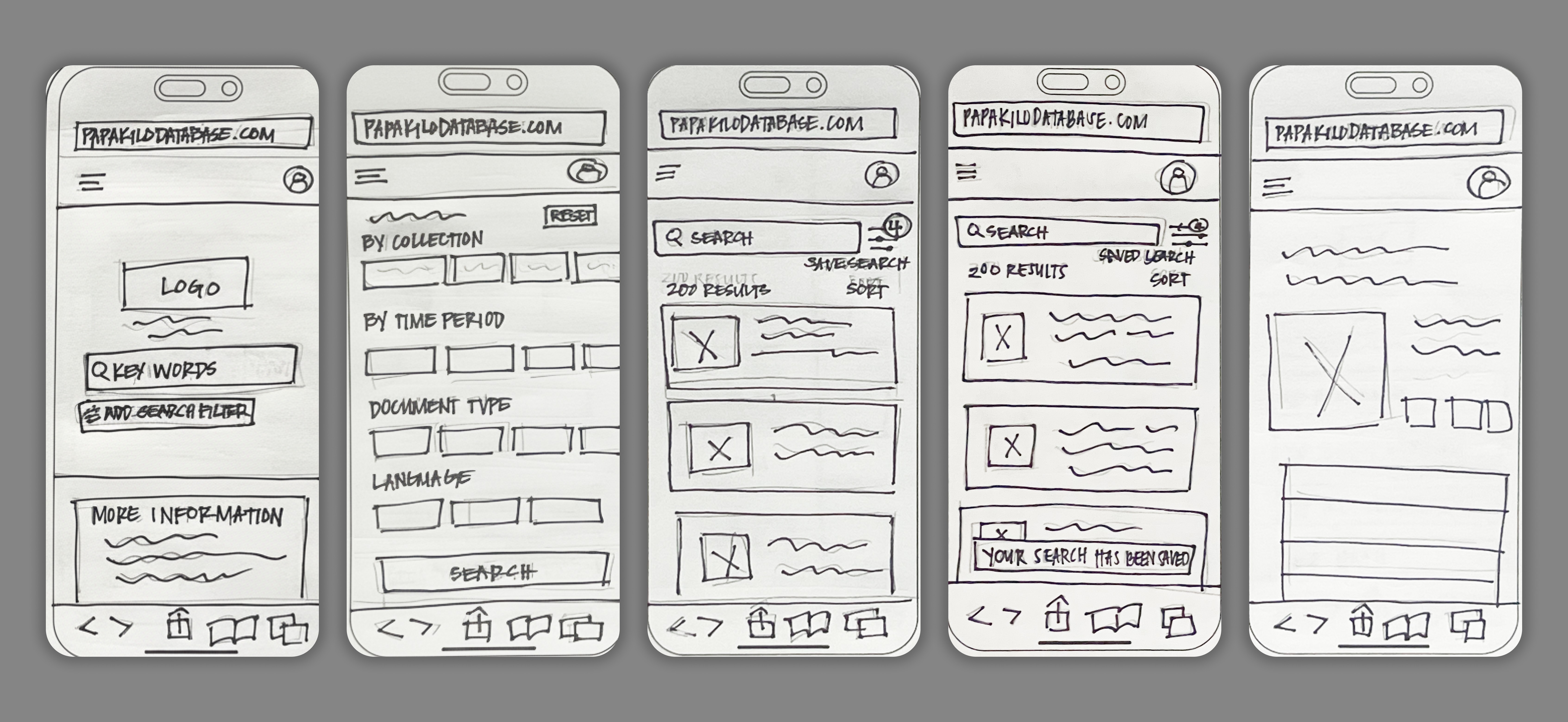 I explored various low-fi designs to create a structure for a "new" Papakilo Database based on insights I gathered from users so far.