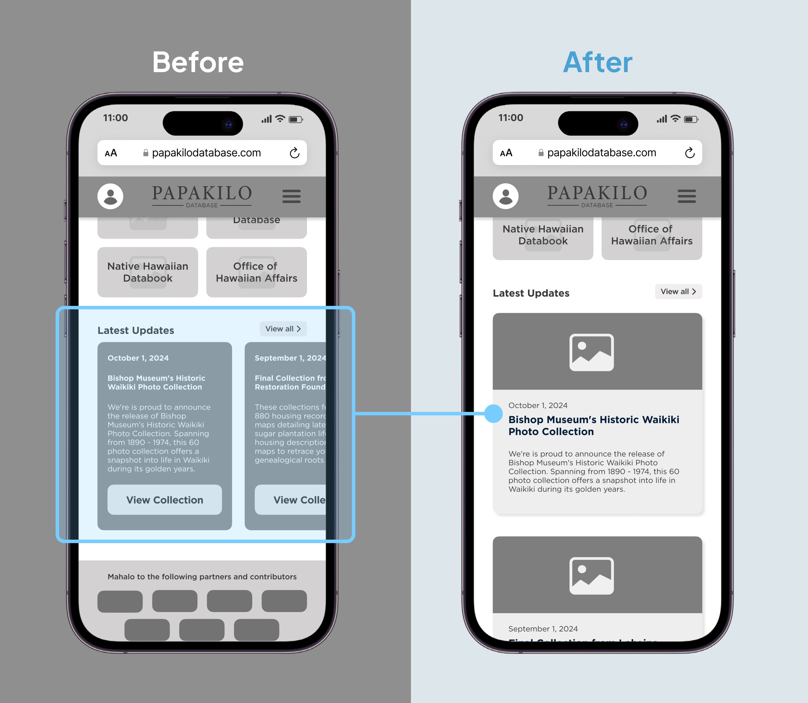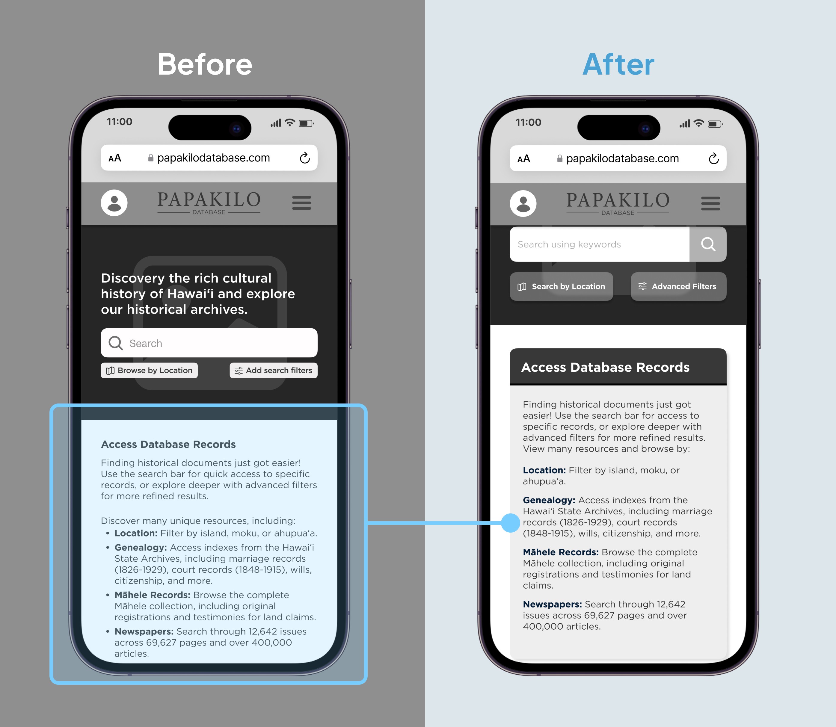 While working at the Office of Hawaiian Affairs, I identified critical usability barriers in our Papakilo Database which is a legacy system housing nearly 1 million records of Native Hawaiian history and cultural knowledge.